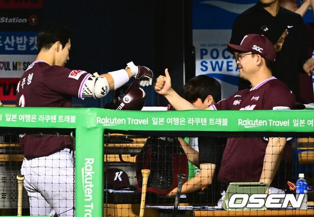8회초 무사에서 키움 이주형이 중월 솔로포를 날리며 김태완 코치와 기뻐하고 있다. 2025.09.17