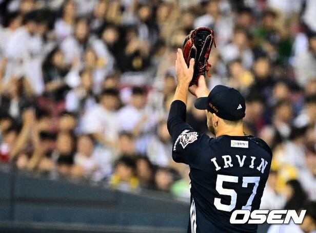 6회말 1사 1,2루에서 두산 콜어빈이 교체되며 팬들에게 인사를 하고 있다. 2025.09.30