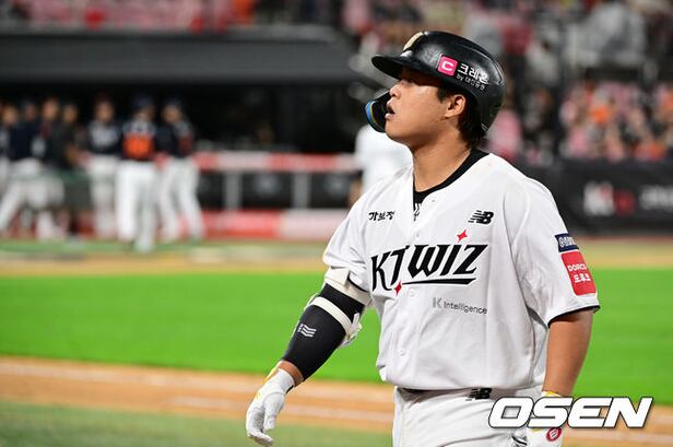 7회말 2사 2루 KT 강백호가 내야 플라이로 물러나고 있다. 2025.10.03
