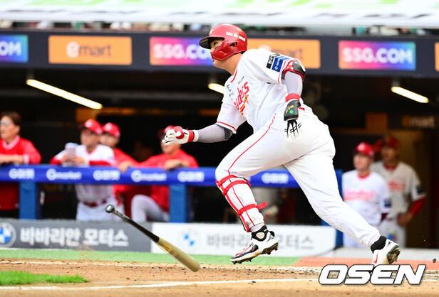 7회말 1사 1루에서 SSG 고명준이 좌월 투런포를 날리고 있다. 2025.10.09