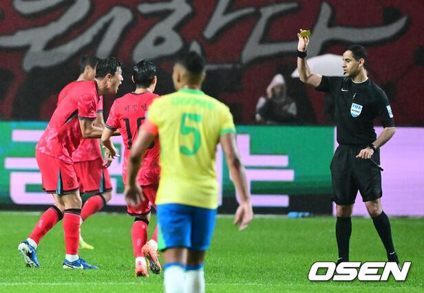 전반 한국 김민재가 파울 선언에 불만을 나타내고 있다. 2025.10.10