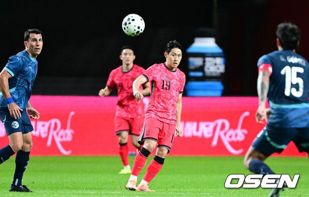 후반 대한민국 이강인이 오현규에게 패스를 하고 있다.2025.10.14