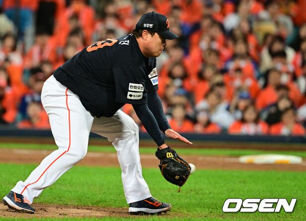 1회말 한화 류현진이 삼성 김지찬의 투수 앞 땅볼을 처리하고 있다. 2025.10.21
