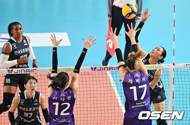 25일 김천실내체육관에서 진에어 2025-2026시즌 V리그 여자부 한국도로공사와 흥국생명의 경기가 열렸다.