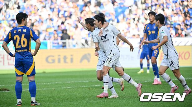 대구FC 김주공이 전반 45분 선취골을 성공시키고 기뻐하고 있다. 2025.10.26