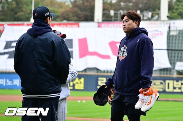 경기에 앞서 한화 류현진이 훈련을 위해 그라운드로 나서고 있다. 2025.10.26