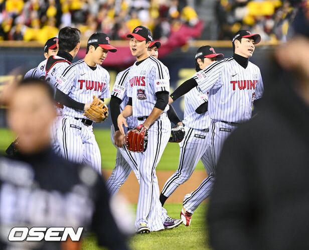 경기종료 후 LG 선수들이 승리의 기쁨을 나누고 있다. 2025.10.27
