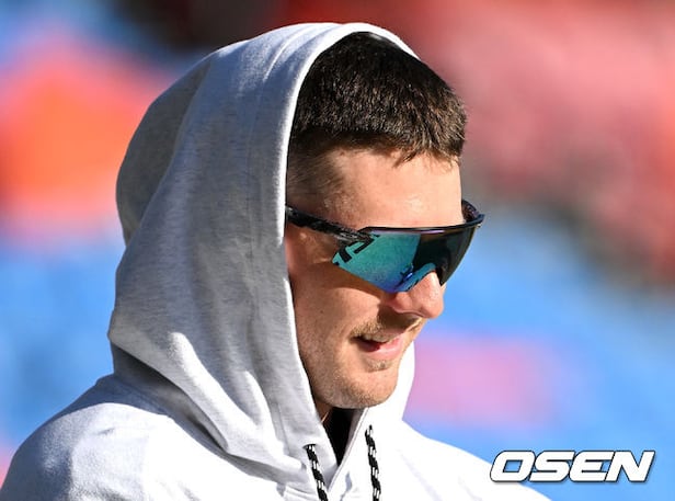 경기에 앞서 LG 톨허스트가 훈련 중 미소를 짓고 있다. 2025.10.27
