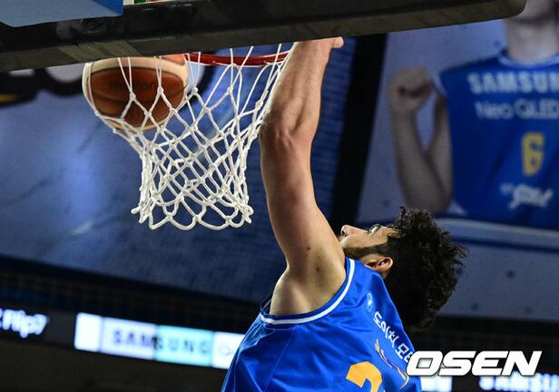 4쿼터 삼성 칸터가 원핸드 덩크를 성공하고 있다. 2025.10.28