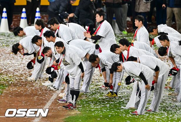 LG 선수들이 한화 팬들에게 인사를 하고 2025.10.31