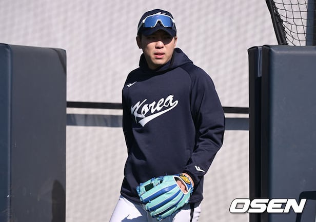 야구 대표팀 김영웅이 훈련을 위해 그라운드에 들어서고 있다. 2025.11.03