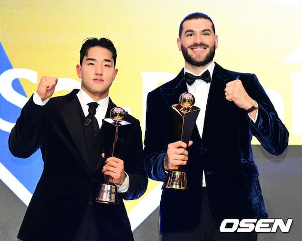 신인상 KT 안현민, MVP 한화 폰세가 포즈를 취하고 있다. 2025.11.24