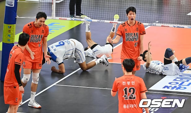 27일 부산 강서실내체육관에서 진에어 2025-2026 V리그 남자부 OK저축은행과 삼성화재의 경기가 열렸다.