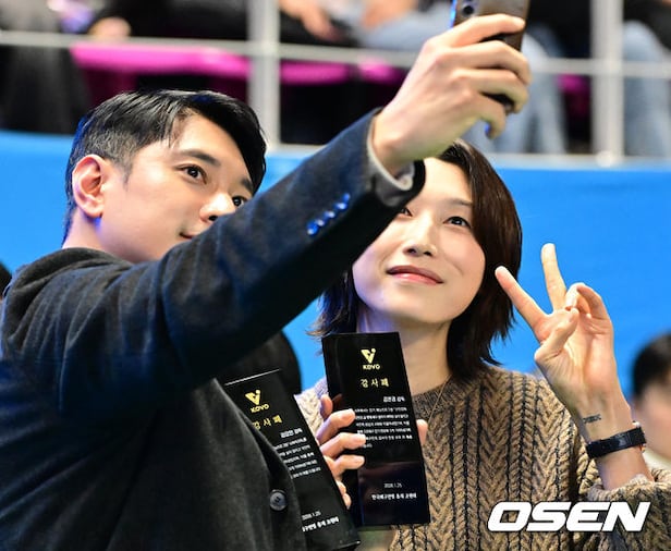 김요한, 김연경이 감사패를 받고 기념 촬영을 하고 있다. 2026.01.25
