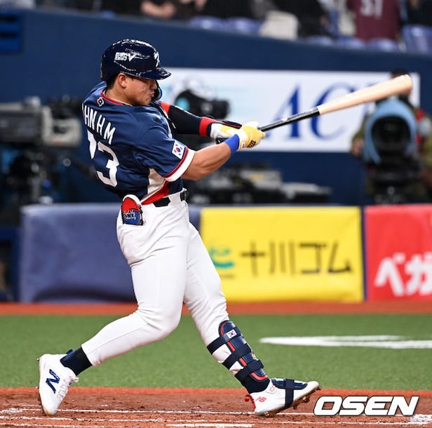 2회초 2사 1,2루에서 한국 안현민이 적시타를 치고 있다. 2026.03.03