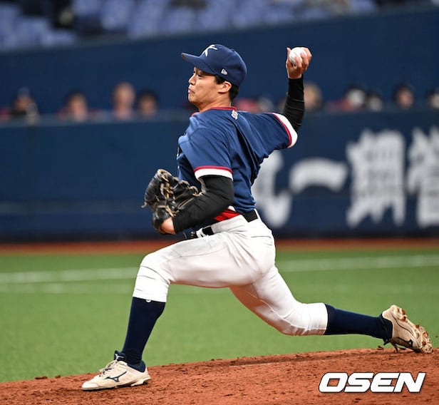 8회말 2사 2루에서 한국 유니폼을 입은 이시이 코키가 역투하고 있다. 2026.03.03
