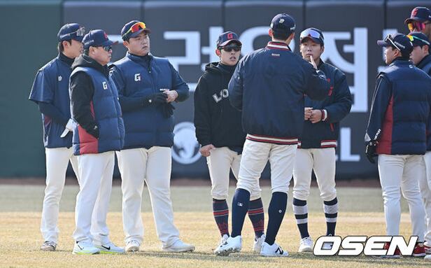 롯데 자이언츠 김태형 감독이 선수들과 얘기를 하고 있다. 2026.03.12
