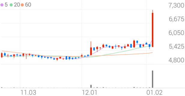 [뉴스봇] 피제이전자(006140)가 상한가를 기록했다. 전일 대비 30.00% 상승한 7,280원에 거래되고 있다.