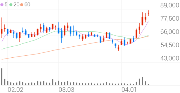 [뉴스봇] 테스(095610)가 52주 신고가를 경신했다. 전일 대비 4.47% 상승한 86,400원에 거래되고 있다.