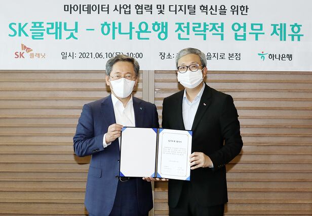하나은행은 10일 서울 중구 을지로 하나은행 본점에서 SK플래닛과 '마이데이터 서비스' 협력을 위한 업무협약을 체결했다고 밝혔다.