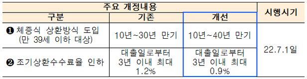 한국주택금융공사(주금공·HF)는 오는 7월 1일부터 조기상환수수료율을 현행 최대 1.2%에서 0.9%로 인하하고, 40년 만기 보금자리론에 체증식 상환방식을 도입한다고 28일 밝혔다. 이는 지난 16일 금융위원회에서 발표한 '새정부 가계대출 관리방향 및 단계적 규제 정상화방안'에 따른 것이다.
