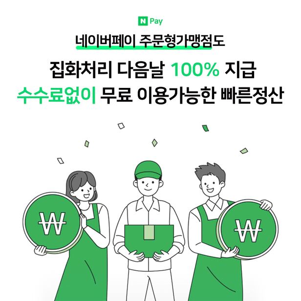 네이버파이낸셜은 온라인 사업자의 자금 회전을 돕는 상생 서비스인 '네이버페이 빠른 정산'을 주문형 가맹점으로도 확대한다고 6일 밝혔다.