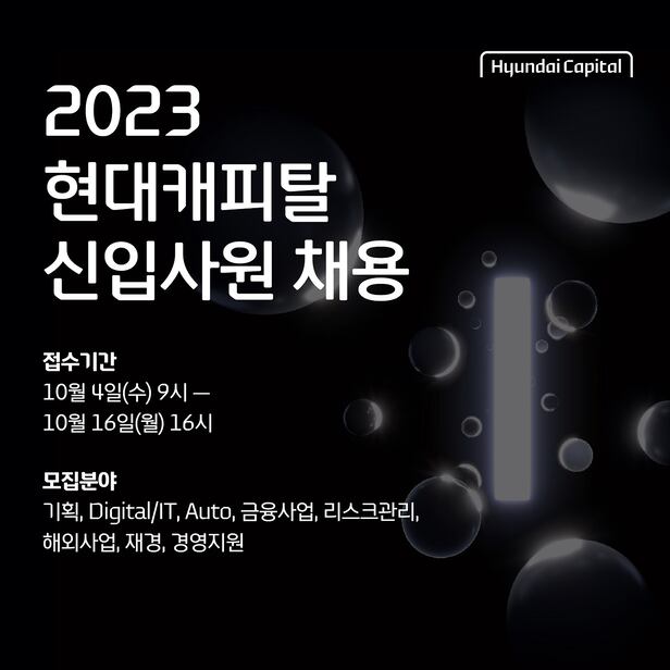 현대캐피탈은 2023년 신입사원 공개채용을 실시한다고 26일 밝혔다.