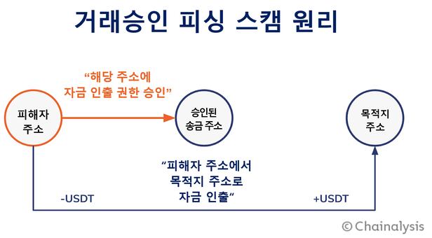 피해자를 속여 가상자산을 송금하게 하는 기존의 가상자산 스캠과 달리, 거래승인 피싱은 사용자를 속여 거래에 서명하게 해 범죄자가 피해자의 지갑에서 토큰을 빼낼 수 있는 권한을 부여한다. 이러한 스캠의 전형적인 온체인 패턴은 크게 두 단계로 우선 피해자가 자신도 모르게 두 번째 주소를 승인한 다음 범죄자들이 이 두 번째 주소를 이용해 새로운 목적지로 자금을 빼돌린다.