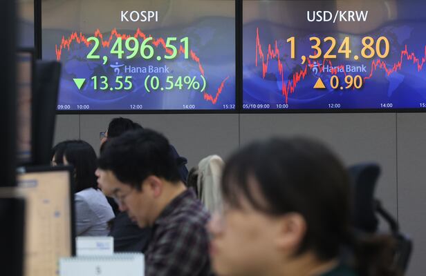 10일 코스피지수는 전 거래일 대비 13.55포인트(0.54%) 하락한 2496.51에 거래를 마쳤다. 이날 코스피지수는 2505.96에 출발한 뒤 2500선에서 등락하다가 오후 들어 낙폭을 키우며 2500선을 내줬다.