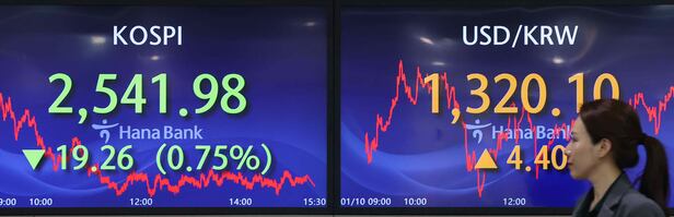 10일 코스피지수가 외국인, 기관이 동반 매도하면서 2540선에서 하락세로 마감했다. 코스피지수는 이날까지 6거래일 연속 하락했다. 새해 들어 첫날만 오르고 내내 하락세를 이어가고 있는 것이다. 코스닥지수도 1% 넘게 밀렸다.