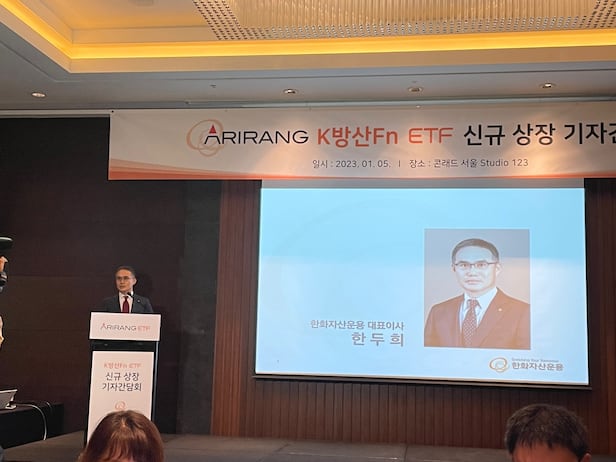 이날 한두희 한화자산운용 대표는 "국내 방위산업은 전 세계에서 상당히 각광받고 있고, 올해 국내 방산 기업 수출액이 20조원을 넘어설 것으로 예상한다"면서 "방위산업이 국내 주요 산업으로 확실히 자리매김할 것으로 기대되는 가운데, 유망한 방위산업 테마와 관련해 고객들에게 좋은 투자전략을 소개할 기회라고 판단해 'ARIRANG K방산Fn ETF'를 선보이게 됐다"고 말했다.