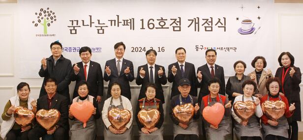 한국증권금융 꿈나눔재단이 대전 동구에 있는 동구정다운어르신복지관에서 '꿈나눔카페 16호점' 개점식을 가졌다고 16일 밝혔다. 이날 개점식엔 윤창호 한국증권금융 사장 겸 재단 이사장이 참석했다