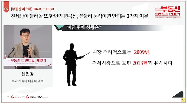 신 대표가 보는 지금 한국의 부동산 시장은 2009년 모습과 같다. 전세 시장으로만 놓고 보면 2013년과도 유사하다. 신 대표는 "2009년과 2013년 어떤 과거를 참고하느냐에 따라 투자 전략이 달라진다"며 "2013년이라면 투자해야겠지만 2009년이라면 관망하면서 준비해야 한다"고 했다.