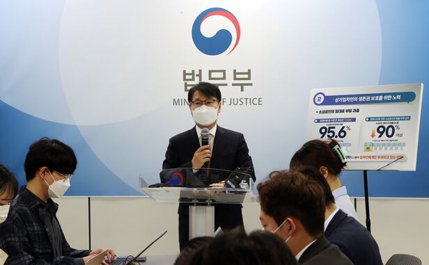 강성국 법무부 법무실장은 4일 오후 서울 서초동 서울고검 내 의정관에서 정책 브리핑을 열고 코로나19로 소상공인의 타격이 크다며 이 같은 정책을 추진하겠다고 밝혔다.