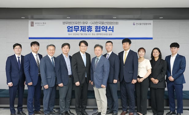 법무법인 화우(대표변호사 이명수)가 사단법인 한국물산업협의회(회장 홍승관)과 업무제휴 협약을 맺었다. 한국물산업협의회는 물 산업 발전과 관련 기업 육성을 지원하는 단체다. 물 산업에는 스마트 수자원 관리 및 상하수도, 제조업, 건설업, 시설 운영, 설계·엔지니어링 서비스업 등이 포함된다.