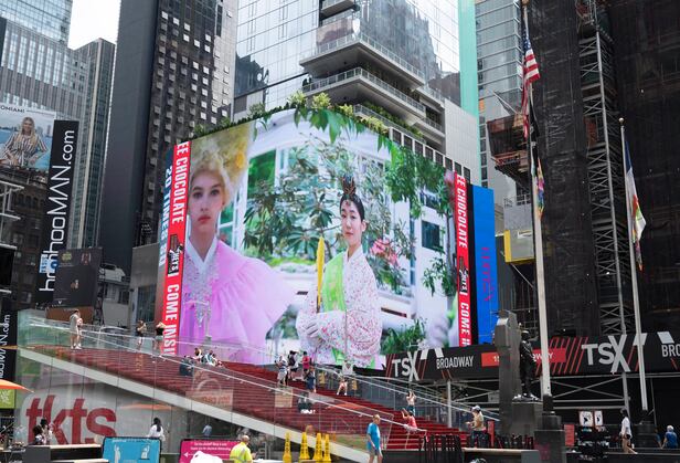 뉴욕 타임스퀘어 대형 전광판에 한복 광고가 한 달 동안 상영된다.