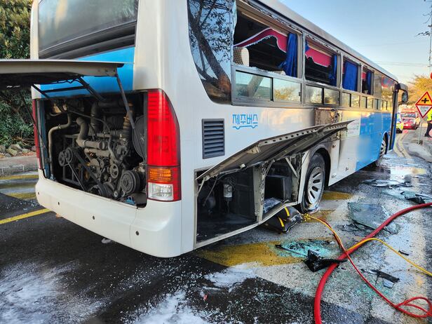 제주동부소방서는 20일 오전 6시 55분쯤 제주 서귀포시 남원읍 위미리의 한 도로에서 주행 중이던 간선버스에 불이 났다는 신고를 받고 현장에 출동했다고 밝혔다. 불은 이후 13분 만인 오전 7시 13분쯤 꺼졌다.