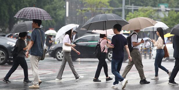 기상청은 이날 저기압과 정체전선의 영향으로 중부지방은 오후 6시까지 가끔 비가 내리고 남부지방은 밤까지 비가 내린다고 예보했다.