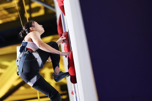 이 종목은 두 선수가 출전해 15m 암벽을 빠르게 올라 버튼을 먼저 터치하는 선수가 이기는 방식이다.